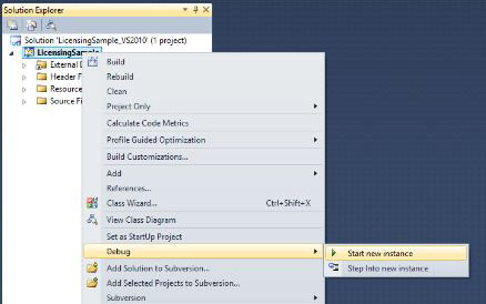 Right click the LicensingSample project and select Debug > Start New Instance.