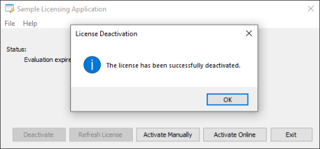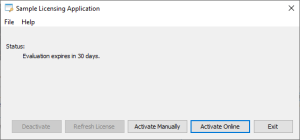 Return to the activation prompt for our Licensing Sample.
